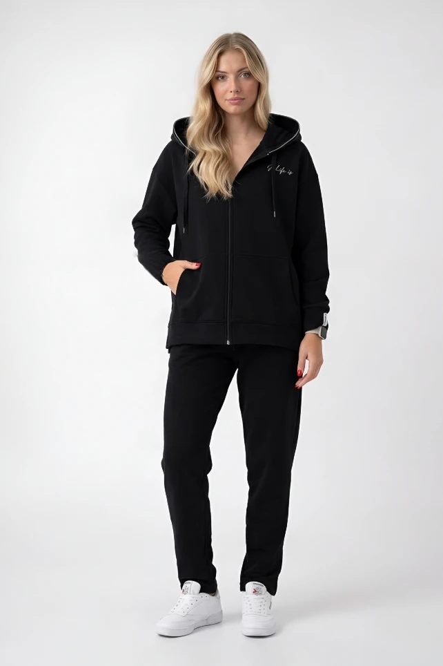 Praktyczna i stylowa bluza w klasycznej czerni, która sprawdzi się w każdej garderobie. Model o sportowym charakterze, idealny na co dzień i do aktywnych stylizacji.