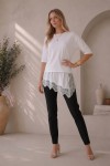 Warstwowy efekt z koronką: Dolna część bluzki została wzbogacona o asymetryczną, subtelną warstwę wykończoną koronką. Ten detal tworzy efekt „2 w 1”, dodając stylizacji lekkości i elegancji.