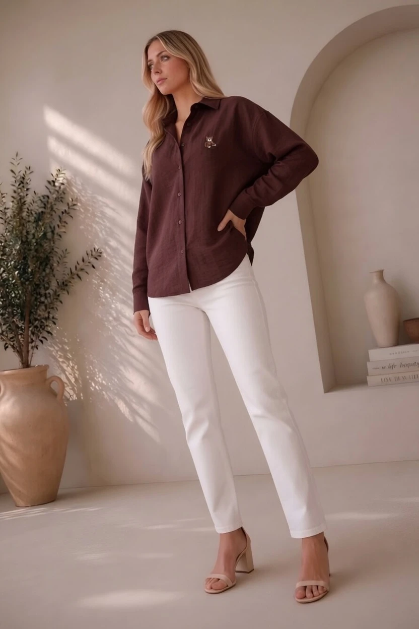Klasyczny krój: Prosty fason z kołnierzykiem i zapięciem na guziki zapewnia uniwersalność i łatwość stylizacji.