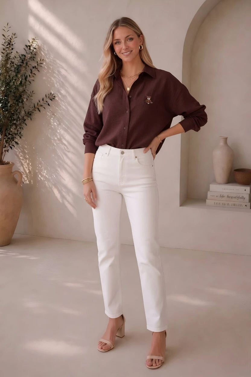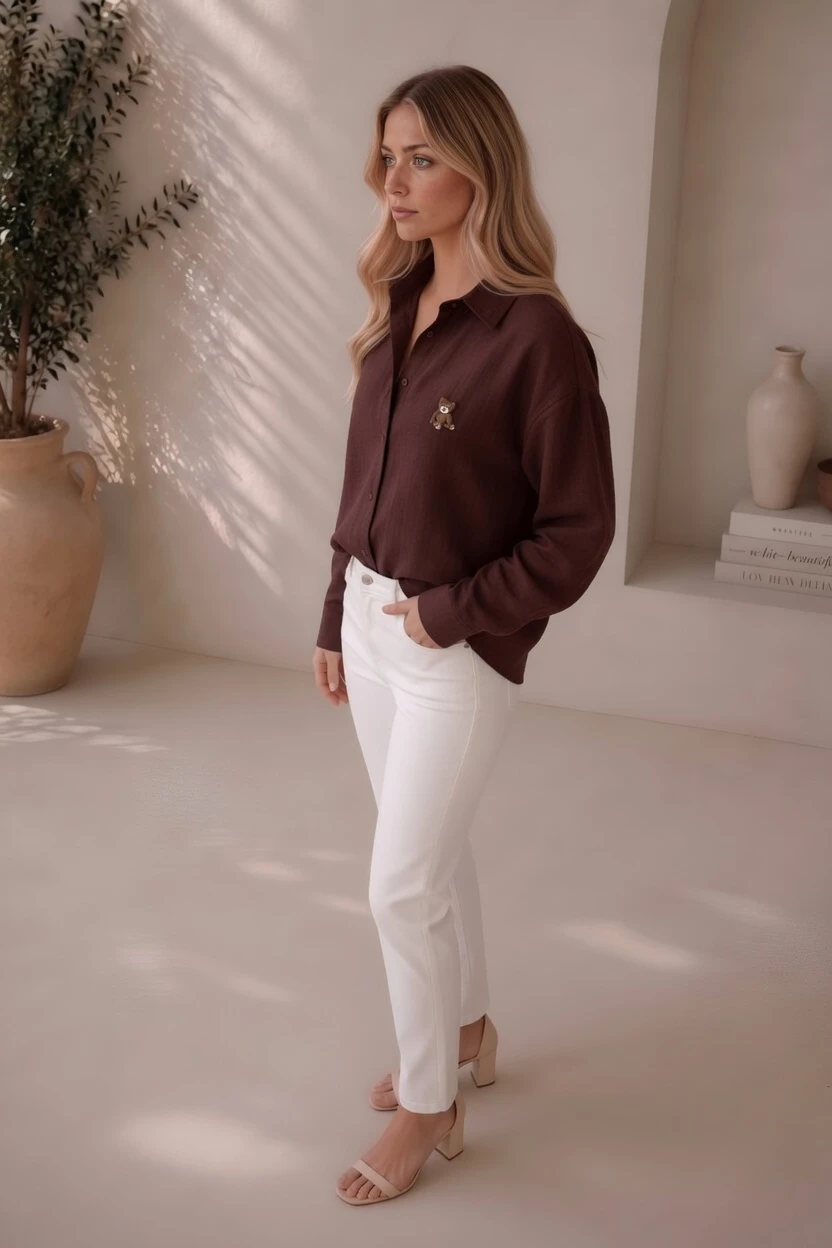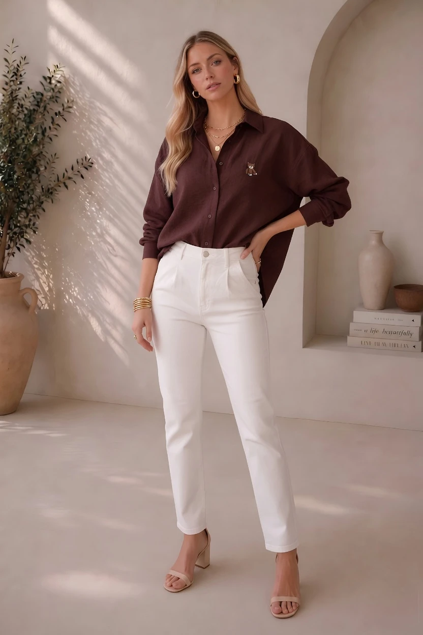Świetnie wygląda w połączeniu z jasnymi spodniami lub jeansami. Możesz nosić ją wpuszczoną w spodnie dla bardziej eleganckiego efektu lub luźno – dla casualowego looku