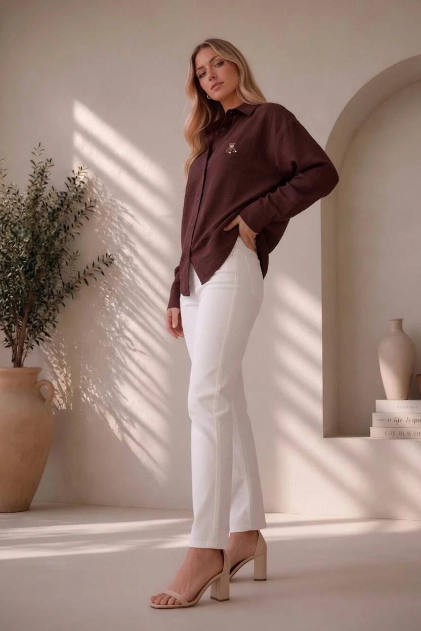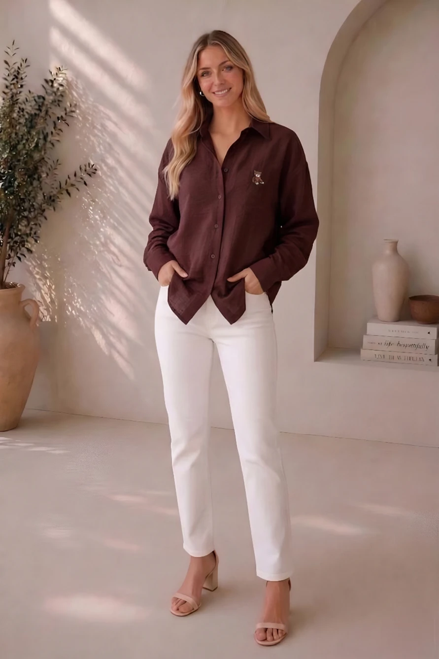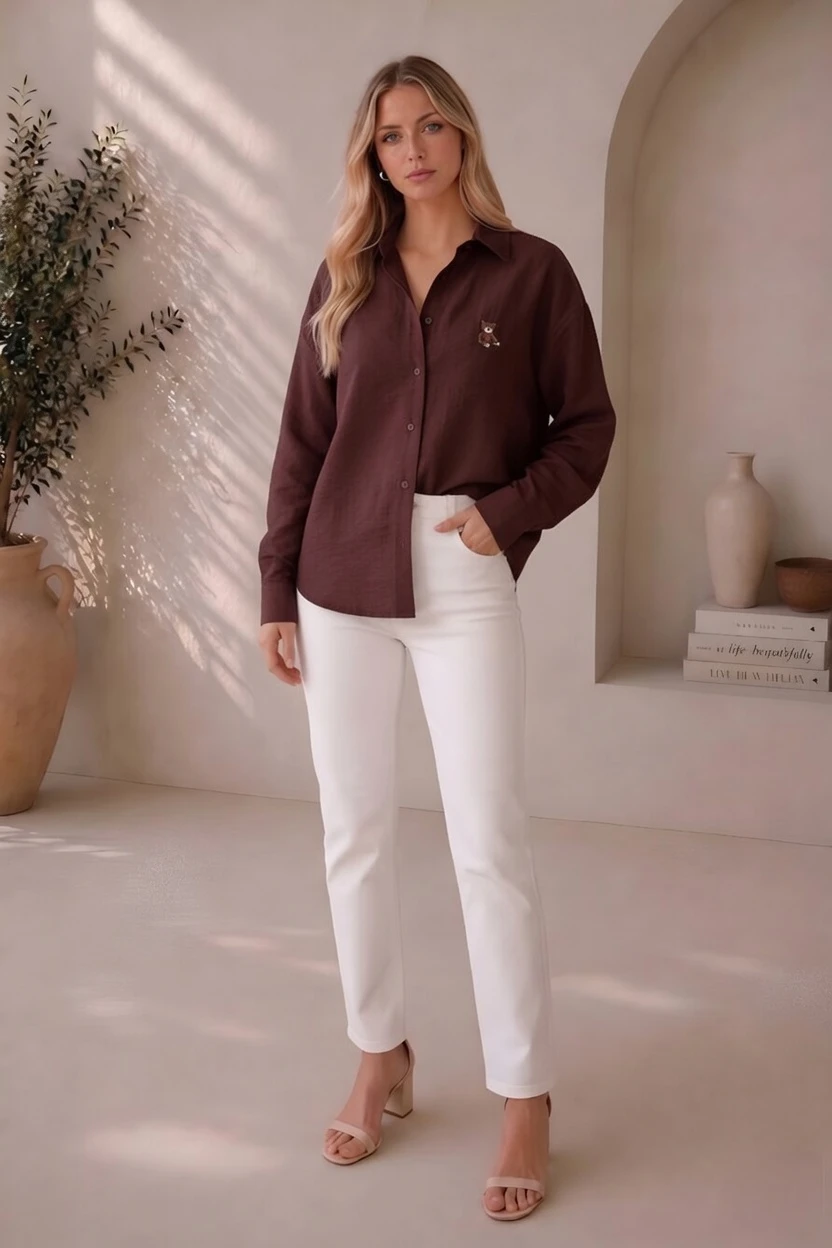 Świetnie wygląda w połączeniu z jasnymi spodniami lub jeansami. Możesz nosić ją wpuszczoną w spodnie dla bardziej eleganckiego efektu lub luźno – dla casualowego looku