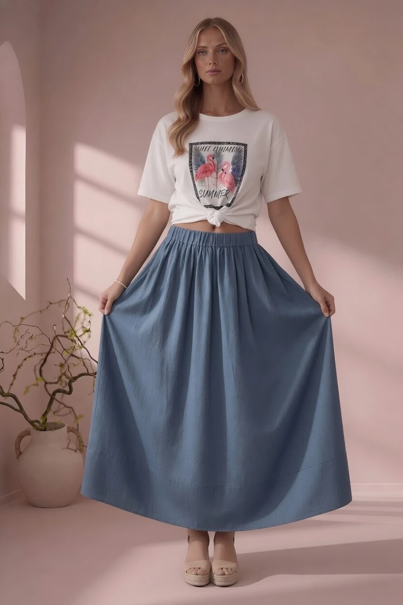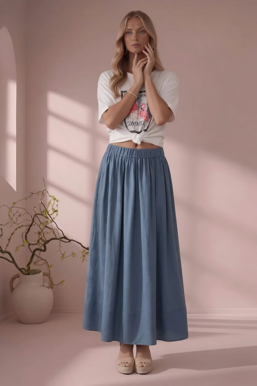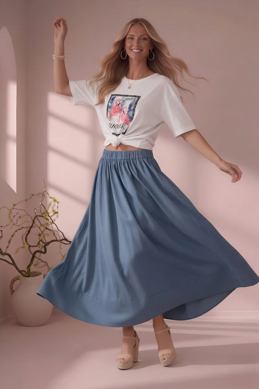 Spódnica maxi w kolorze indygo– kobiecość i lekkość na co dzień!